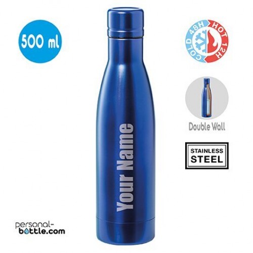 We laser graveren onze producten - dit verwijdert een laag van de gekleurde coating waardoor het roestvrij staal eronder zichtbaar wordt. Dit betekent dat uw naam een metallic/zilveren uitstraling heeft. De flessen worden GRATIS op maximaal formaat van 30 x 30 mm gegraveerd. Voor een andere maat betaalt u een kleine toeslag.